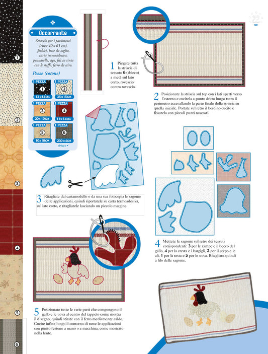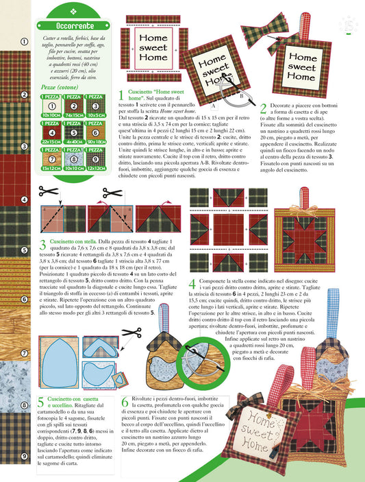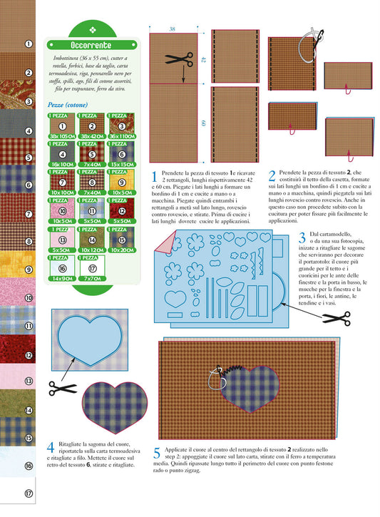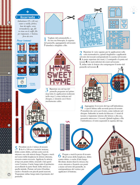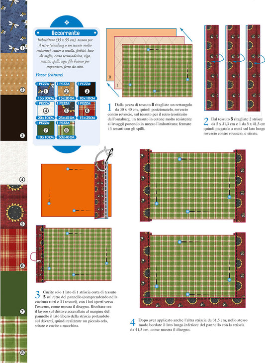In questa sezione la creatività si unisce al lavoro con le pezze, alla maestria della macchina per cucire e a una serie di schemi unici. Qui scampoli di stoffa si trasformano in opere d'arte tessili, dando vita a creazioni straordinarie.Grazie alla tua macchina per cucire e a schemi ben studiati potrai realizzare numerose creazioni. Quilt accoglienti, cuscini decorativi, presine artistiche, pannelli d'ispirazione, tappetini, tovagliette e persino portaoggetti creativi.